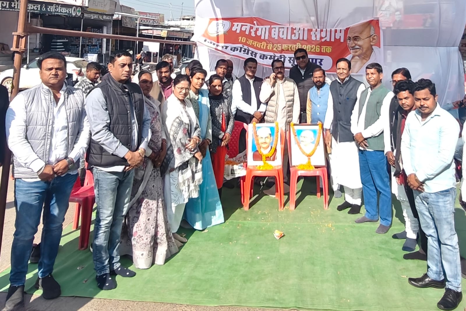 सूरजपुर। Save MNREGA movment: कांग्रेस के राष्ट्रव्यापी मनरेगा बचाओ संघर्ष अभियान के तहत जिला कांग्रेस कमेटी सूरजपुर द्वारा स्थानीय अग्रसेन चौक पर एकदिवसीय उपवास एवं धरना प्रदर्शन का आयोजन किया गया। कार्यक्रम में संगठन के जिला प्रभारी डॉ. जेपी श्रीवास्तव तथा कांग्रेस नेता दानिश रफीक विशेष रूप से उपस्थित रहे।