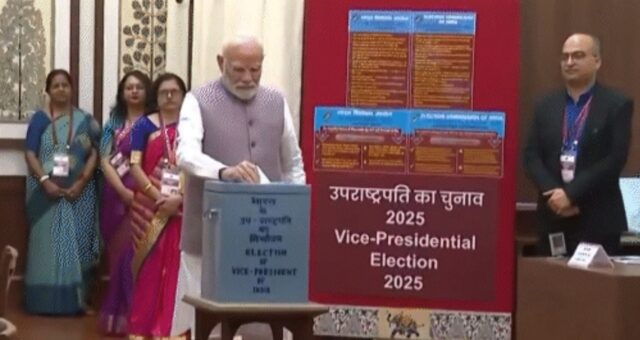 नई दिल्ली। Vice Presidential Election : उपराष्ट्रपति पद के लिए मतदान जारी है। सुबह 10, बजे से मतदान शुरू हुआ। प्रधानमंत्री नरेंद्र मोदी ने पहला वोट डाला। राष्ट्रीय जनतांत्रिक गठबंधन (NDA) के उम्मीदवार और महाराष्ट्र के राज्यपाल सी पी राधाकृष्णन का मुकाबला इंडिया गठबंधन के उम्मीदवार और सुप्रीम कोर्ट के पूर्व न्यायाधीश बी सुदर्शन रेड्डी से है। मतदान शाम 5 बजे तक चलेगा। मतगणना शाम 6 बजे के बाद होगी। इसके साथ ही 50 दिन बाद जगदीप धनखड़ की जगह नया उपराष्ट्रपति मिल जायेगा। 21 जुलाई को धनखड़ के अचानक इस्तीफा दे दिया था।