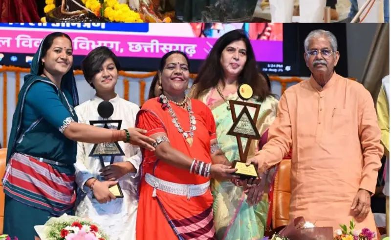 CG art culture : इस अवसर पर पंडवानी गायिका पद्मश्री श्रीमती उषा बारले और लोकगायिका कुमारी आरु साहू को स्मृतिचिह्न भेंट कर सम्मानित किया गया। कार्यक्रम में श्रम एवं उद्योग मंत्री लखनलाल देवांगन, विधायक सुनील सोनी, इंद्र कुमार साव, अनुज शर्मा, केश शिल्पी बोर्ड की अध्यक्ष मोना सेना, अल्पसंख्यक आयोग के अध्यक्ष अमरजीत छाबड़ा, खाद्य नागरिक आपूर्ति निगम के अध्यक्ष संजय श्रीवास्तव, रायपुर महापौर मीनल चौबे सहित अन्य गणमान्यजन उपस्थित थे।