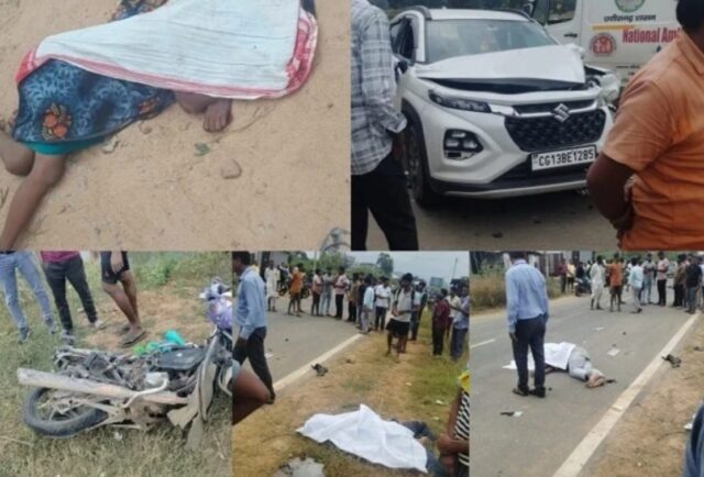 CG road Accident : जानकारी के अनुसार, यह हादसा आज दोपहर हुआ जब कार क्रमांक सीजी 13 बीई 1285 तेज रफ्तार में अनियंत्रित होकर पहले एक पैदल महिला से टकराई और इसके बाद सामने से आ रही बाइक से जा भिड़ी। टक्कर इतनी जोरदार थी कि बाइक पूरी तरह क्षतिग्रस्त हो गई और तीनों की मौके पर ही दर्दनाक मौत हो गई।