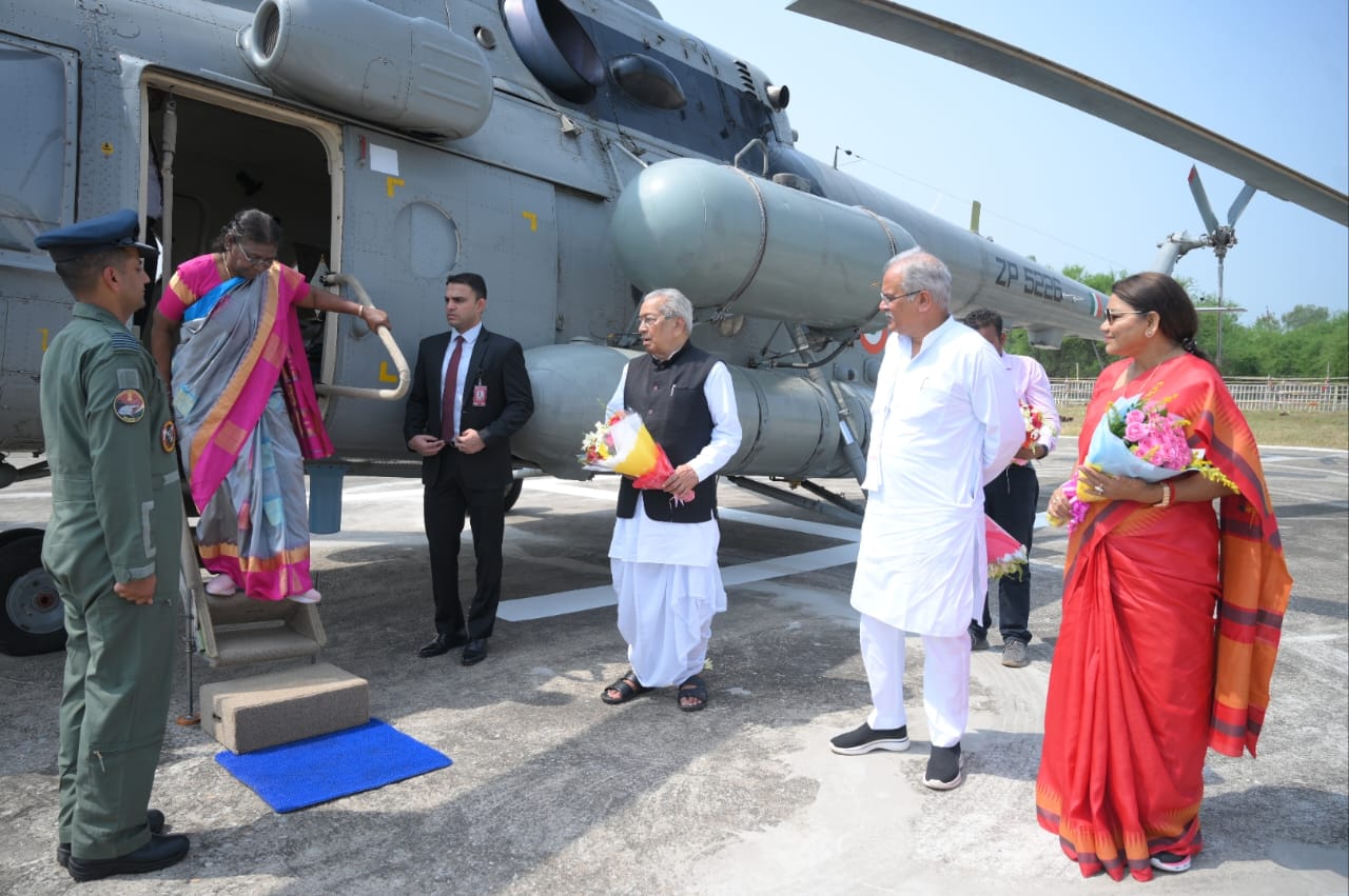 बिलासपुर । राष्ट्रपति श्रीमती द्रोपदी मुर्मू आज एक दिवसीय प्रवास पर न्यायधानी बिलासपुर पहुंची। पंडित सुन्दर लाल शर्मा ओपन यूनिवर्सिटी हेलीपेड पर राष्ट्रपति का स्वागत छत्तीसगढ़ के राज्यपाल विश्वभूषण हरिचंदन एवं मुख्यमंत्री भूपेश बघेल, केंद्रीय जनजाति विकास राज्यमंत्री श्रीमती रेणुका सिंह ने किया। छत्तीसगढ़ शासन के उच्च शिक्षा मंत्री उमेश पटेल, नगर निगम के महापौर रामशरण यादव, कलेक्टर संजीव कुमार झा, पुलिस अधीक्षक संतोष सिंह ने भी राष्ट्रपति का आत्मीय स्वागत किया।
